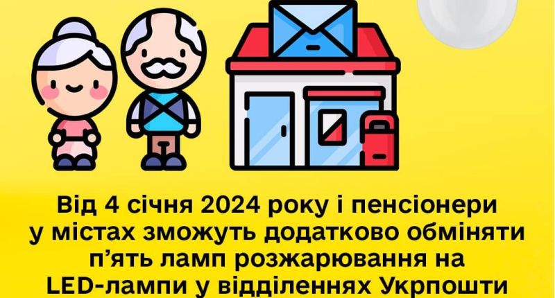 В грудні 2023 року після запровадження ініціативи з обміну п’яти додаткових ламп розжарювання на LED-лампи для пенсіонерів, що проживають у сільській місцевості, українці замінили 4,5 млн старих...