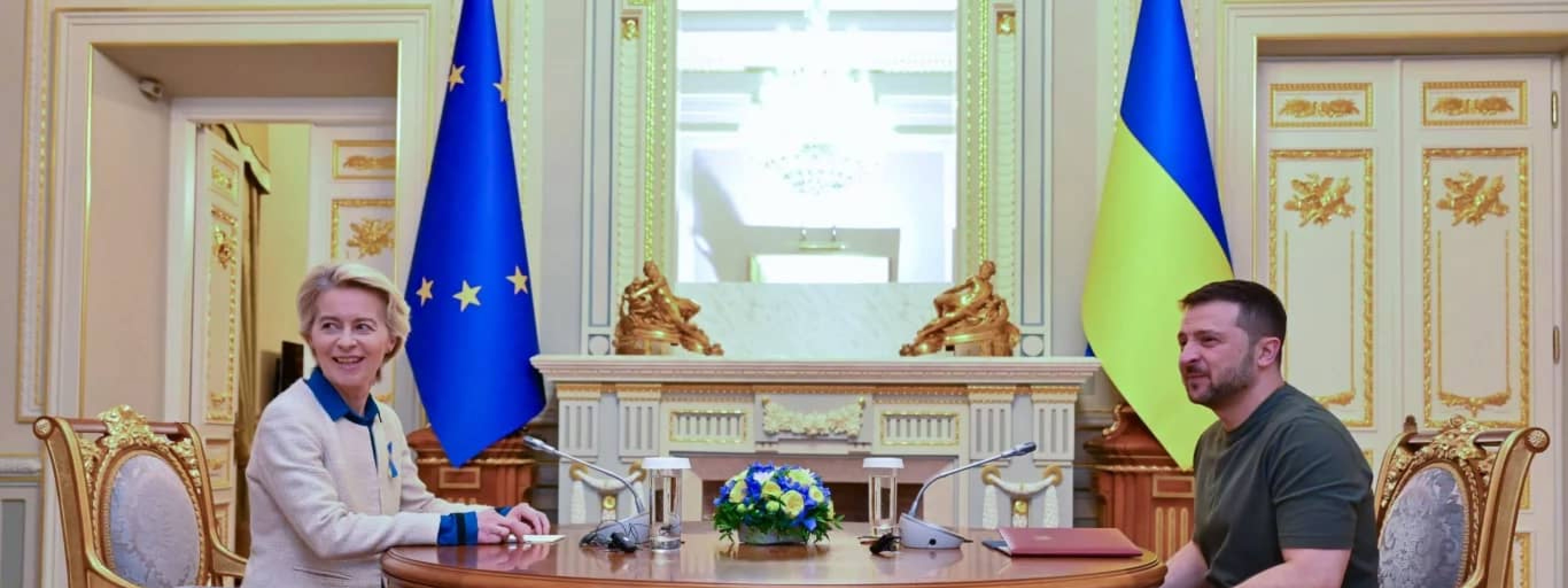 “This summer we transferred the first tranche of €1.4 billion in the form of orders for weapons and equipment via the European Peace Facility,” she said. “Ukraine’s defence industry is among the most cutting edge ones. So we are very much looking forward to deepening our ties in this area, even before you join the European Union.”