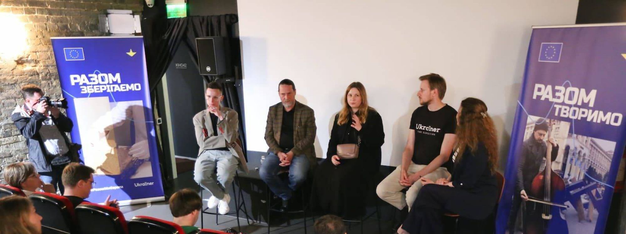 On 29 June, the KINO42 cinema hosted premiere of the first film in a new series of documentaries – “Culture in Time of War. The West”. The film tells the stories of artists from Lviv, Chernivtsi, Lutsk and Uzhhorod and was produced as part of the European Union’s “Together, We Create. Together, We Preserve” communications campaign. The campaign has been running in all regions of Ukraine since March, informing Ukrainians about the European Union’s support for Ukrainian culture and art in times of war.