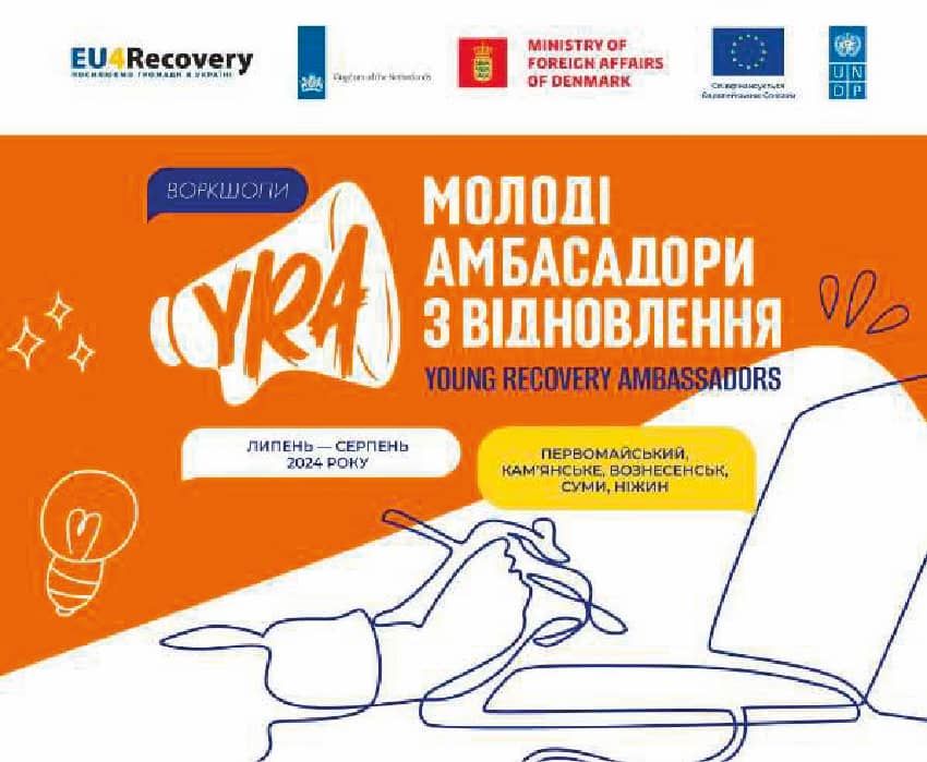 З кінця липня до кінця серпня тривали воркшопи «Молоді амбасадори з відновлення», організовані ПРООН в Україні за фінансової підтримки ЄС (в межах проєкту «EU4Recovery — Розширення можливостей громад в Україні») та урядів Данії й Нідерландів. Учасники навчань розвивали навички з лідерства та громадської активності, спроможність до участі у відновленні своїх громад.