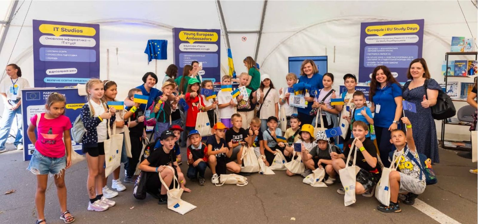 Зокрема, кілька десятків школярів завітали в день запуску кампанії до «Простору можливостей», щоб зіграти у вікторину на знання Європейського Союзу. Її проводили представниці шкільних євроклубів – цей освітній рух уже багато років незмінно підтримує Представництво ЄС в Україні.