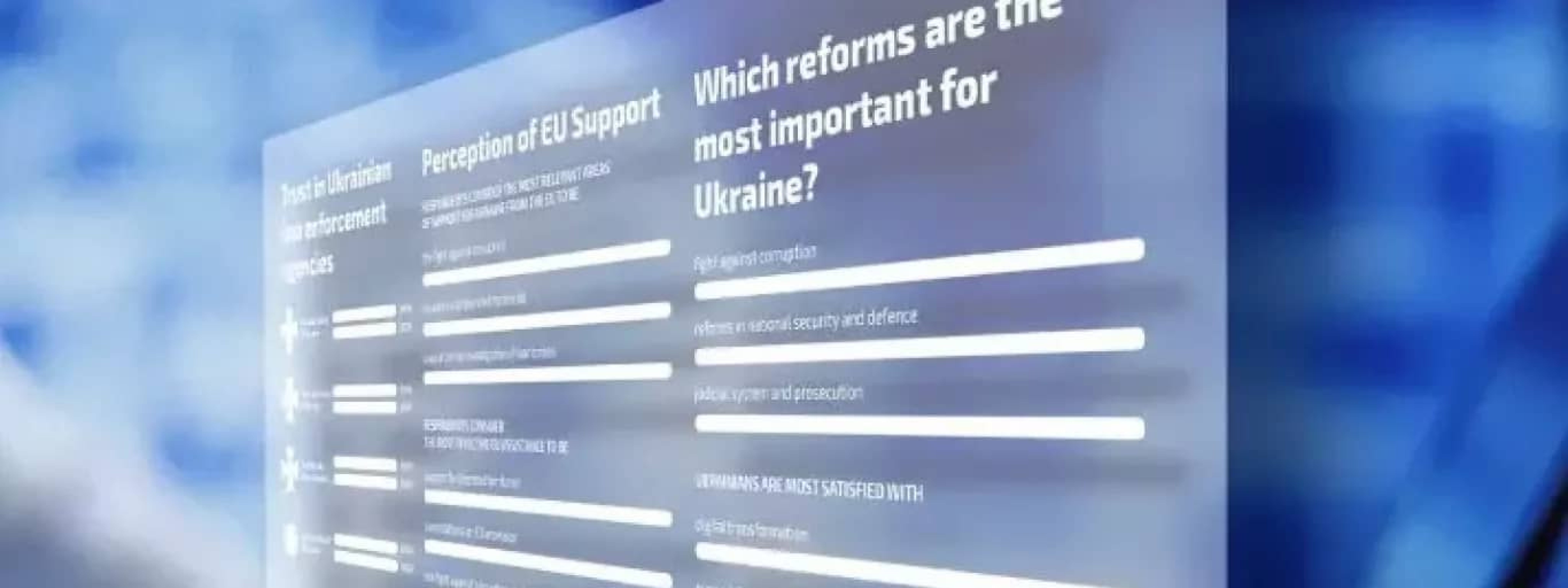 Результати висвітлюють рівень довіри населення до правоохоронних органів і судової системи, ставлення до реформ і підтримки ЄС у цих сферах, а також основні джерела інформації, на які покладаються українці.